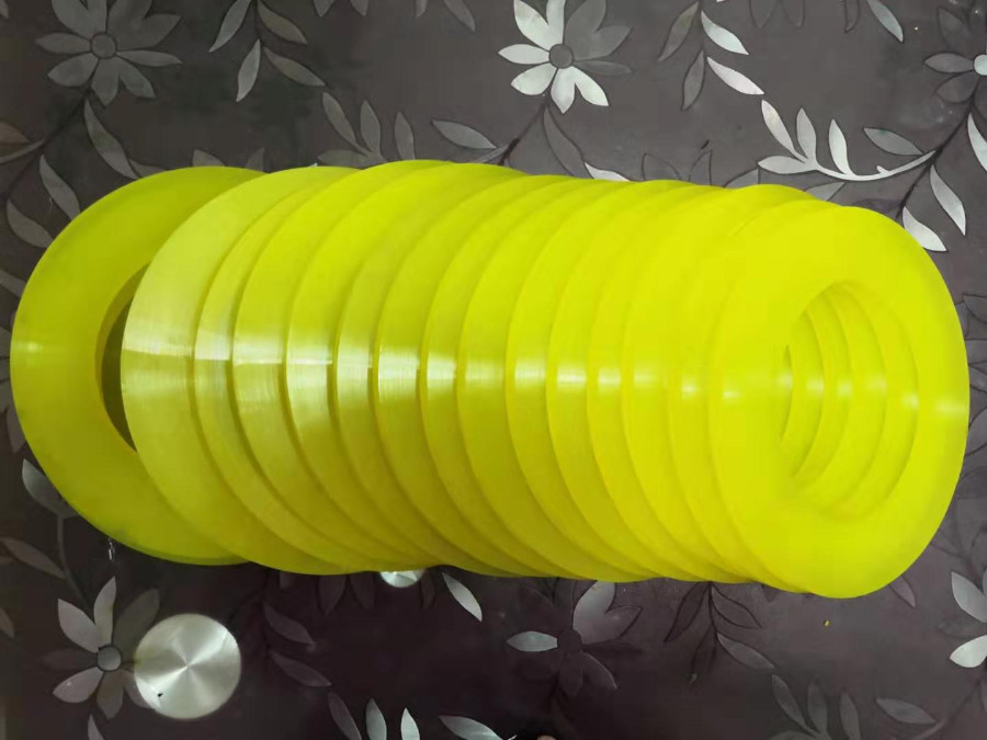 黃色聚氨酯縱剪分條機(jī)退料膠圈產(chǎn)品展示!